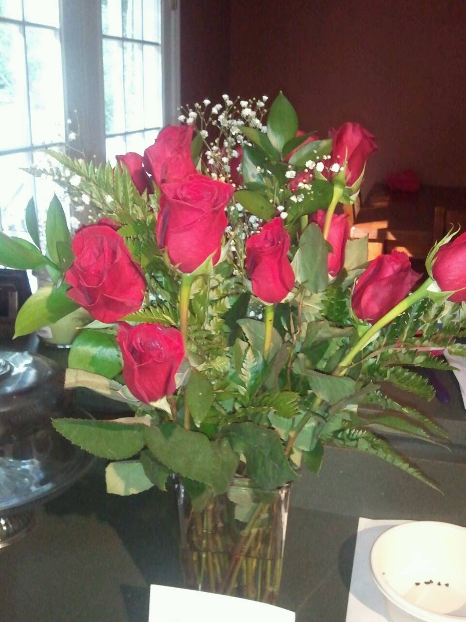 The beautiful 18 long stemmed red roses that dad and Melody sent us!